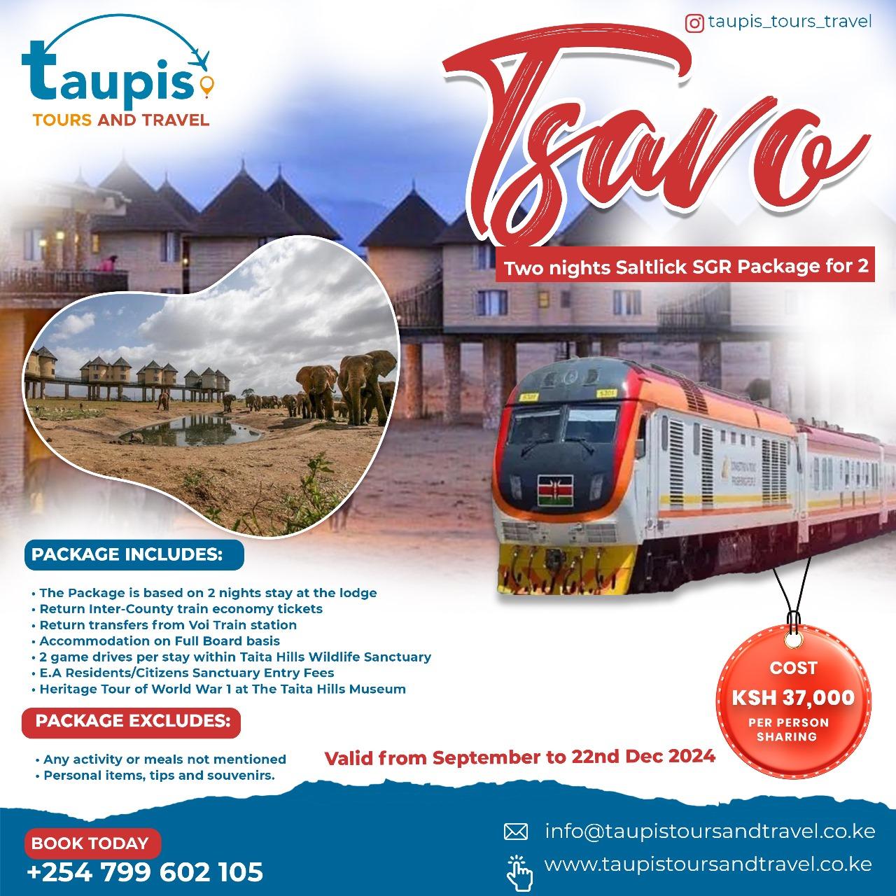 2 nights Saltlick SGR Package for 2 Valid from September to 22nd Dec 2024 Cost- Wholesale- ksh 36,000 Per person sharing a double room Retail- ksh 37,000per person sharing a double room Inclusions; • The Package is based on 2 nights stay at the lodge • Return Inter-County train economy tickets • Return transfers from Voi Train station • Accommodation on Full Board basis • 2 game drives per stay within Taita Hills Wildlife Sanctuary • E.A Residents/Citizens Sanctuary Entry Fees • Heritage Tour of World War 1 at The Taita Hills Museum Exclusions; • Any activity or meals not mentioned • Personal items, tips and souveni