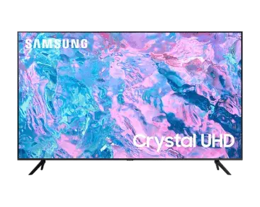 The Samsung 75" UA75CU7000 Crystal UHD 4K LED TV is a 2023 model that offers an immersive viewing experience with its expansive 75-inch display. Featuring a resolution of 3,840 x 2,160 pixels, it delivers sharp and detailed 4K visuals. The TV utilizes PurColor technology, enhancing color accuracy for vibrant and lifelike images. Its Crystal Processor 4K ensures smooth upscaling of content to 4K quality. With a native refresh rate of 50Hz, it provides decent motion handling for most content. The TV is equipped with three HDMI ports and one USB port, allowing for versatile connectivity with various devices. Running on Samsung's Tizen platform, it offers access to a wide array of smart features and streaming services. Additionally, the TV supports HDR10+ and HLG formats, enhancing the dynamic range and delivering more realistic images.