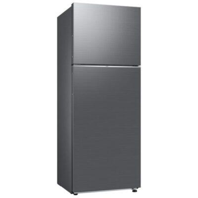 The **Samsung 393L Top Mount Fridge Freezer (RT38CG6421S9)** is a **spacious, energy-efficient, and stylish** refrigerator designed to keep food fresh for longer. Featuring **Twin Cooling Plus™ technology**, it maintains optimal humidity levels while preventing odor mixing between the fridge and freezer. With a **393L capacity** (fridge: **295L**, freezer: **98L**), it includes **adjustable tempered glass shelves, a large vegetable box, and Power Cool & Power Freeze functions** for rapid cooling. The **Digital Inverter Compressor** ensures energy efficiency, durability, and quiet operation, while the **sleek stainless steel finish and LED lighting** enhance its modern appeal.